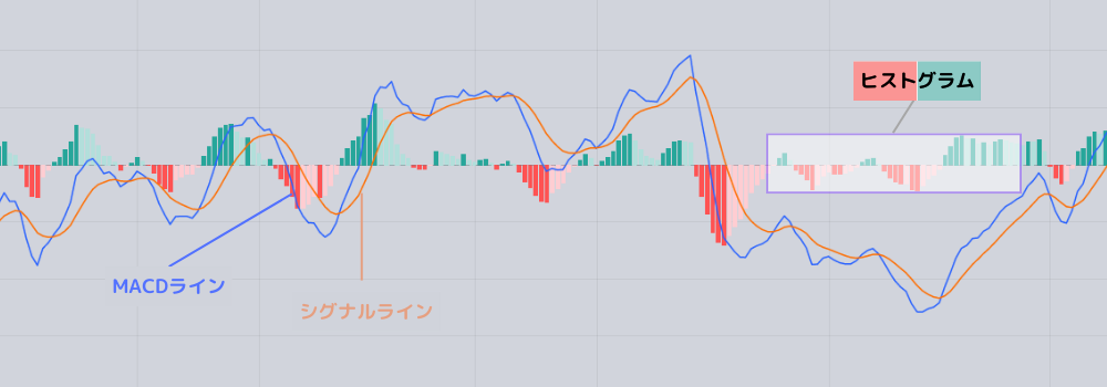 MACDのヒストグラムは、MACDラインとシグナルラインの差を表したものです。